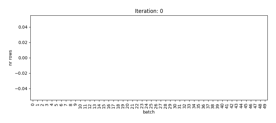 heapq.heappush(heap, (load + count, batch))The animation below shows how each of the 50 batches is filled until all ids are assigned.